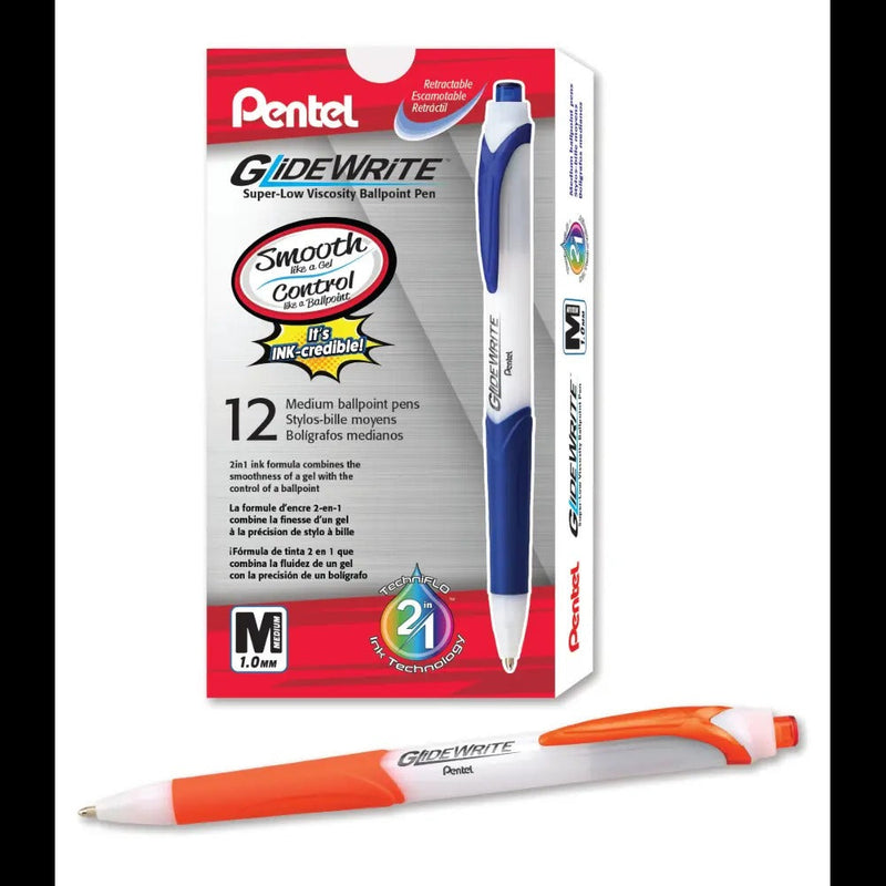 GlideWrite Ballpoint Pen with TechniFlo Ink, (1.0mm) Medium Line, Orange Ink