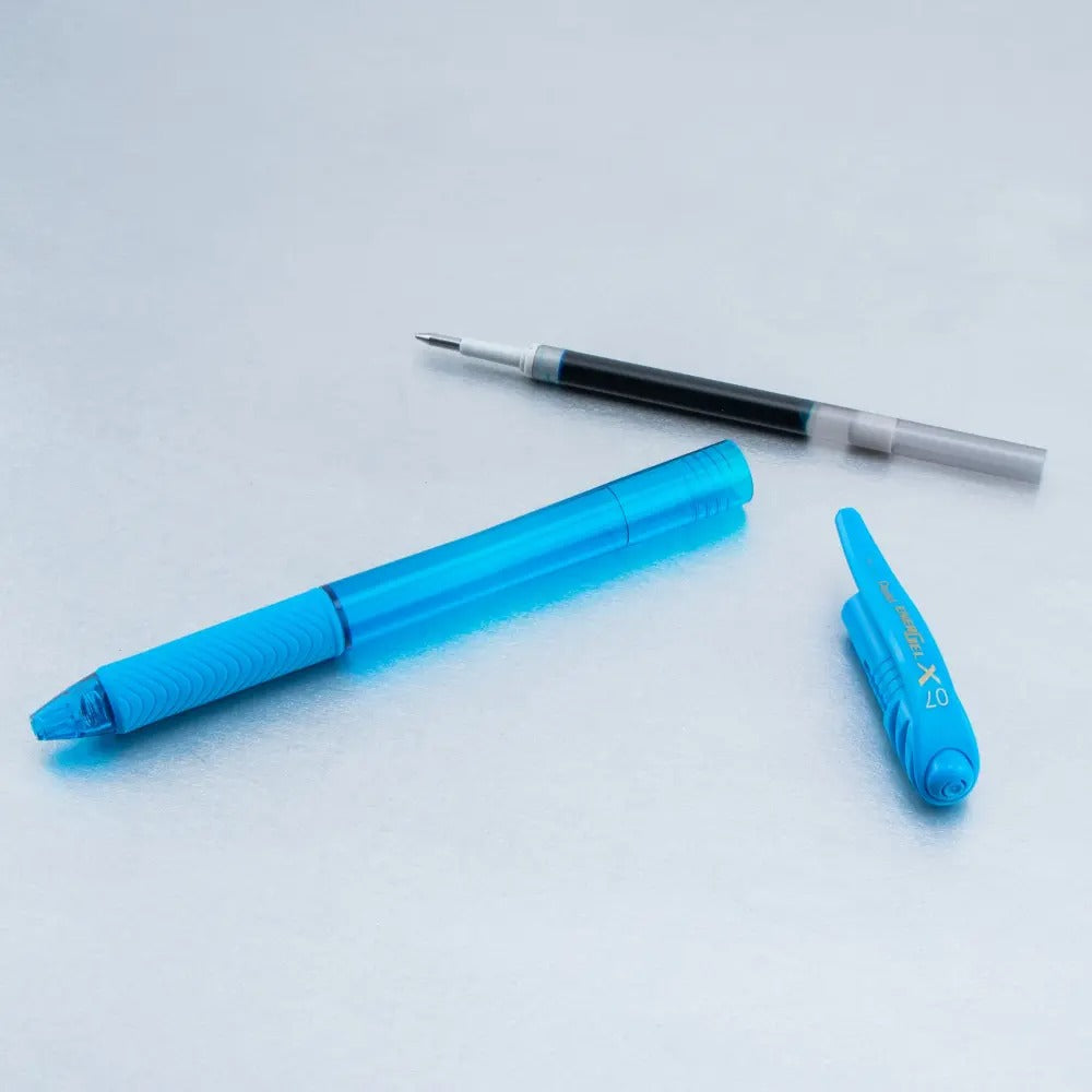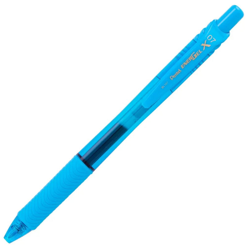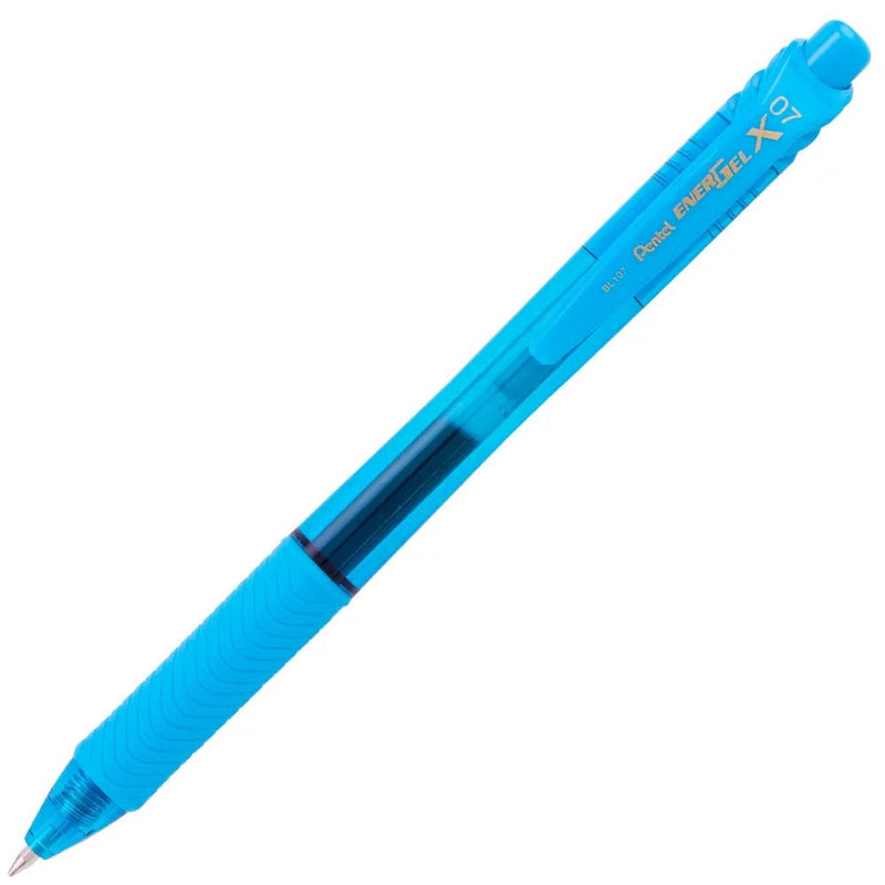 EnerGel-X Retractable Liquid Gel Pen, (0.7mm) Metal Tip, Medium Line, Sky Blue Ink