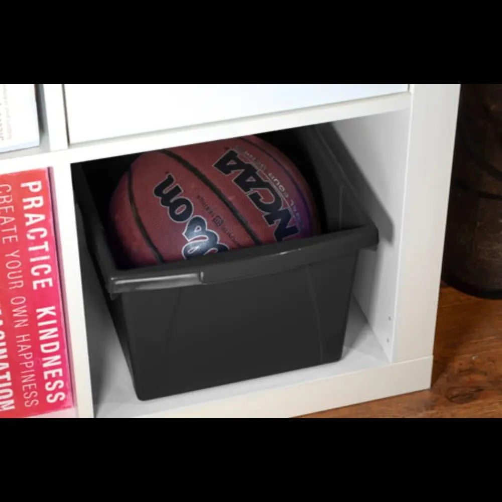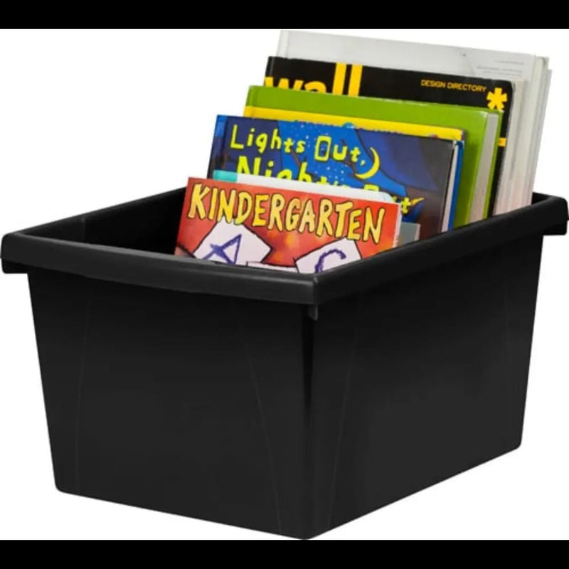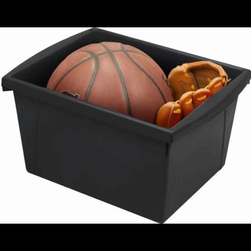 Storex 4 Gallon (15L) Classroom Storage Bin with Lid, Black, 6-Pack