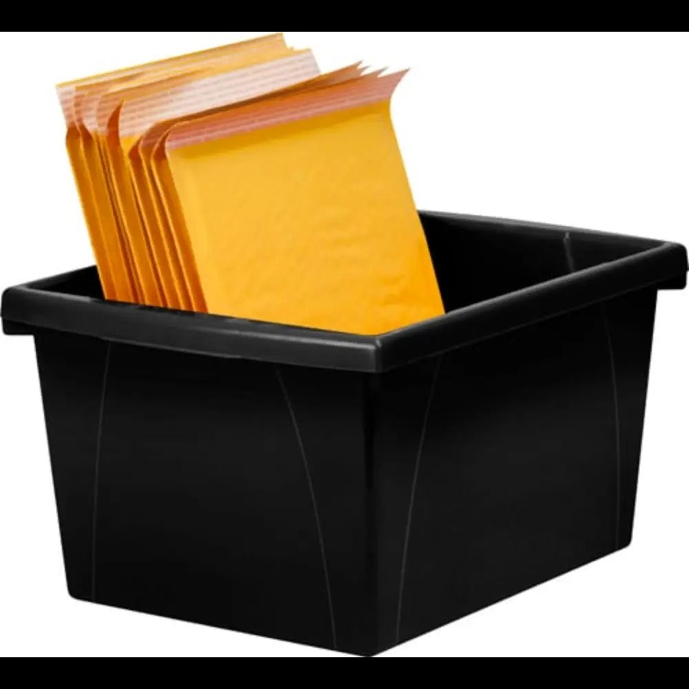 Conquer document clutter with Storex 4 Gallon (15L) Classroom Storage Bin with Lid in this convenient 6-pack, designed for notaries managing diverse filing demands. These stackable containers organize notarization records, loan packages, apostille applications, and reference materials in a single integrated system. The durable black design fits seamlessly into professional office environments, hiding unsightly papers while maintaining accessibility. Lids protect sensitive documents from dust and accidental damage—essential for compliance-conscious signing agents maintaining archival standards.
